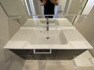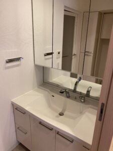 プロが仕上げた洗面所は、単に「綺麗」なだけでなく、蛇口の輝きや鏡の透明度が違います。